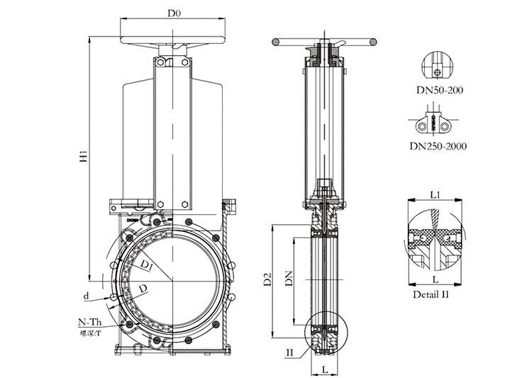Der manuelle Plattenschieber wird hauptsächlich in Pipelines von Kohlenwaschanlagen oder Mineralaufbereitungsanlagen eingesetzt, wodurch die Umschaltzeit unbegrenzt möglich ist, oder in Ersatzventilen eingebaut, was eine einfache Überholung ermöglicht. Zu den anwendbaren Medien gehören Bauxitschlamm, Asphalt, Katalysatorrückstände, Schlick, Betonschlamm, Mörtel, Zellstoff, Zement, Paraffin, Schlacke, Sägemehl, Asche, Ton, Kohlenstaub usw. Der manuelle Plattenschieber hat einige Vorteile einer einfachen Struktur: geringes Gewicht, flexibler Start, einfache Installation und Austausch sowie geringere Wartungskosten. Auf der Oberseite des Ventilkörpers befindet sich eine Handradvorrichtung, die das Gesamtgewicht des Ventilkörpers erheblich reduziert. Wenn das Handrad im Uhrzeigersinn gedreht wird, wird das Ventil eingeschaltet, andernfalls ausgeschaltet.